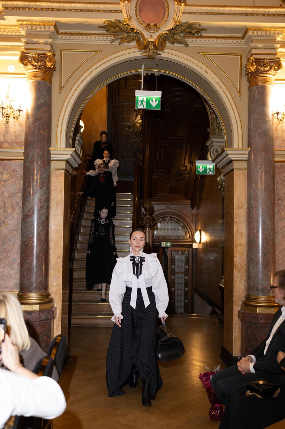 Niepowtarzalnym dopełnieniem wieczoru był pokaz mody prezentujący kolekcję Maria Skłodowska-Curie autorstwa Natalii Ślizowskiej, w którym klasyczne inspiracje spotkały się z nowoczesną formą. Kreacje, światło i ruch modeli stworzyły na tle architektury Willi Lentza sugestywną, pełną energii wizualną historię. 👠✨