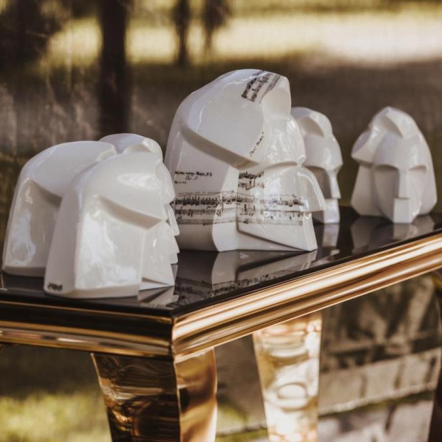 Prezentacja ceramicznych głów Fryderyka Chopina.